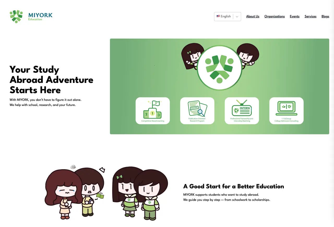 When I was a teenager in Vietnam, I wanted to study abroad too. My family didn’t have the opportunity. So I understood what MiYork’s students carry. Not just ambition. Longing. I didn’t need persona documents to feel who this site was for. I had been them.
